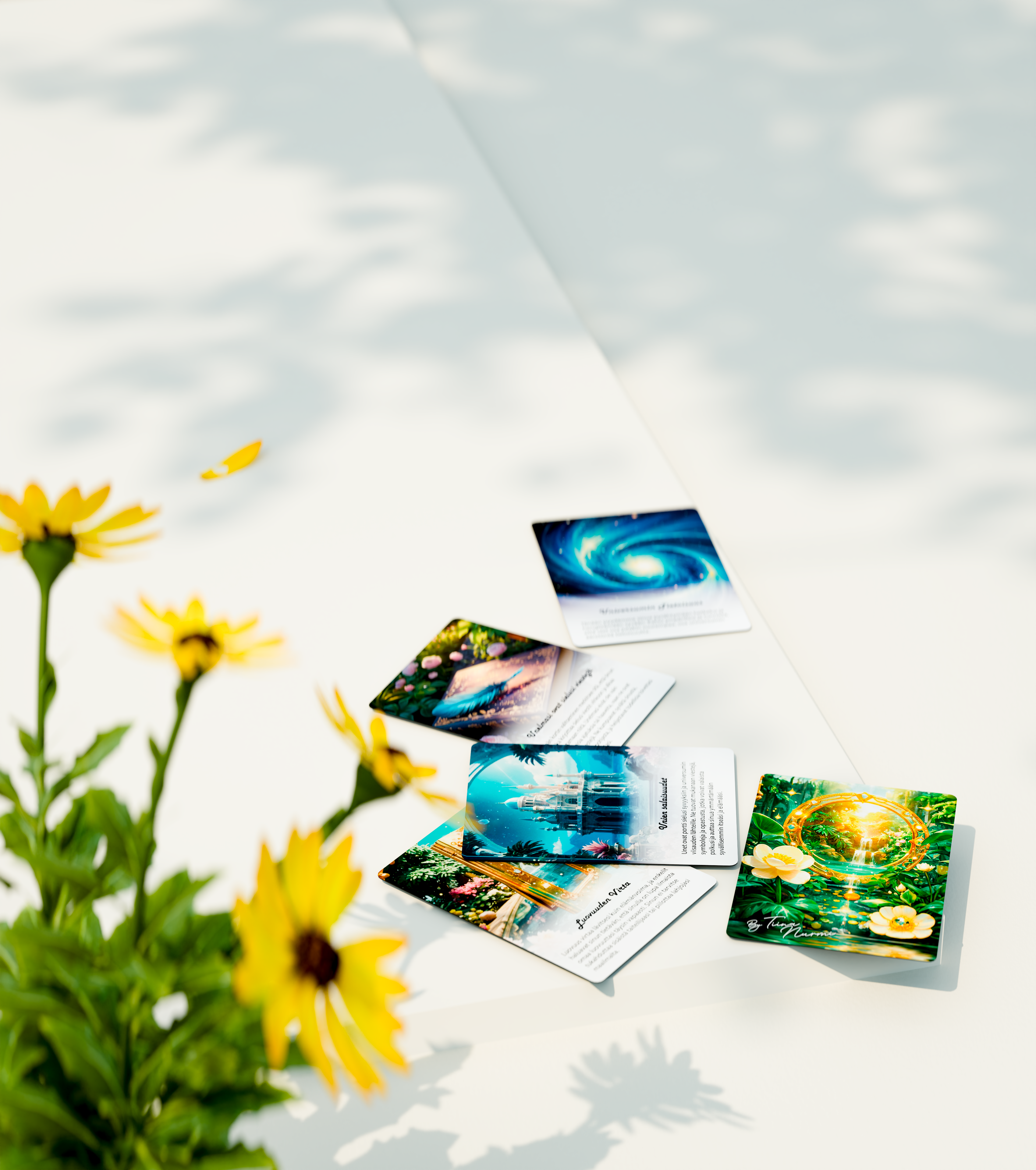 Kortit on luotu puhtaasta ilon, valon ja rakkauden energiasta. Jokainen kortti kantaa ainutlaatuista värähtelyä, joka muistuttaa sinua omasta ainutlaatuisuudestasi ja yhteydestäsi korkeampaan voimaan.